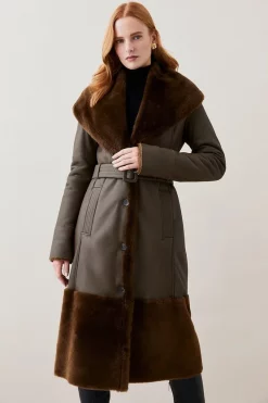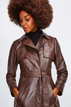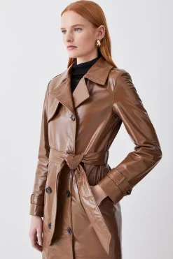 Top 10 π€© Karen Millen Leather Contrast Panels Belted Midi Trench π§₯ Coat – black π