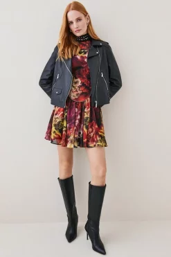 Best Pirce π Karen Millen Floral Shirred Detail Woven Mini π Dress – electric blue π