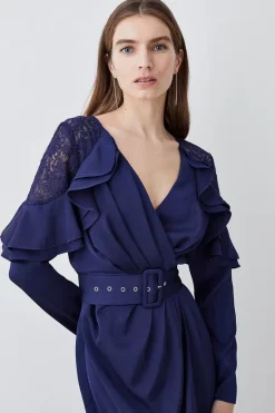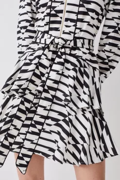 Budget π Karen Millen Viscose Satin Crepe Feather Hem Double Breasted Tux Mini π Dress π