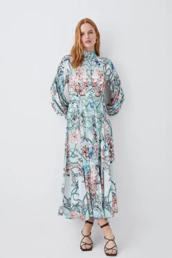 Best Pirce π Karen Millen Tall Boarder Floral Print Satin Woven Midi π Dress – purple π