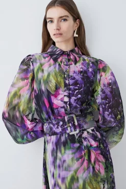 Hot Sale π Karen Millen Lydia Millen Tall Floral Belted Woven Midi π Shirt π Dress π