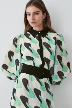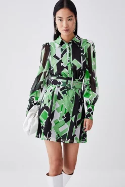 Buy π Karen Millen Green Rose Georgette Belted Woven π Shirt π Dress – apple green π