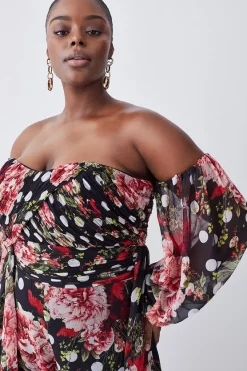 Deals π₯ Karen Millen Plus Size Spot Floral Chiffon Bardot Wide Leg Jumpsuit – multi π₯°