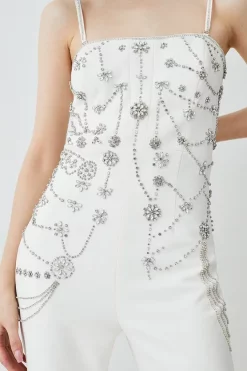 Coupon π Karen Millen Crystal Embellished Woven Jumpsuit – ivory β€οΈ