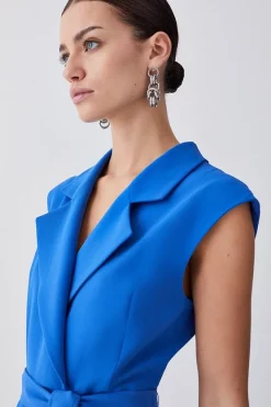Discount π Karen Millen Petite Soft Tailored Pleat Panel Sleeved Belted Midi π Dress π