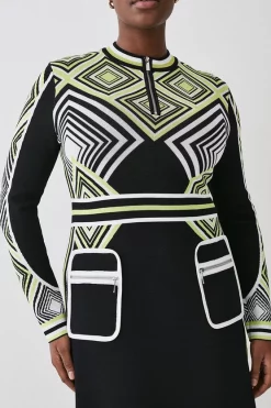 Budget π Karen Millen Plus Size Geo Jacquard Knit Fit And Flare Mini π Dress – mono β