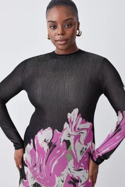 Cheapest π Karen Millen Plus Size Boarder Floral Print Satin Woven Midi π Dress – purple π€©