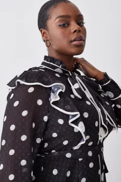 Cheapest π₯° Karen Millen Plus Size Mono Mixed Dot Piped Ruffle Georgette Midi π Dress β