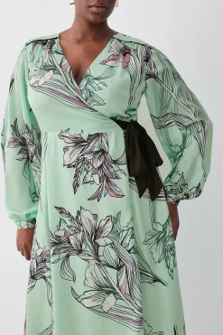 Cheap β Karen Millen Plus Size Floral π¨ Hammered Satin Woven Wrap Midi π Dress – green π―