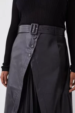 Discount π― Karen Millen Plus Size Leather Belted Pleat Detail Midi π Skirt – black π