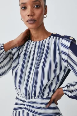 Top 10 π Karen Millen Military Stripe Twist Detail Mini π Dress – navy π―