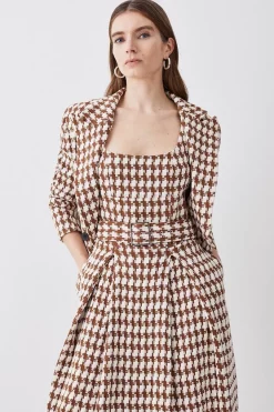 Top 10 π Karen Millen Check Tweed Full π Skirt Midi π Dress – brown π