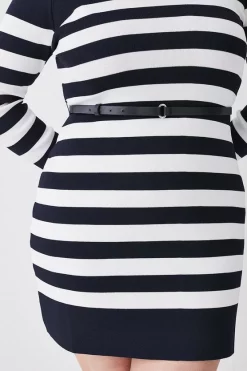 Deals π₯° Karen Millen Plus Size Stripe Rib Knit Belted Mini π Dress π₯°