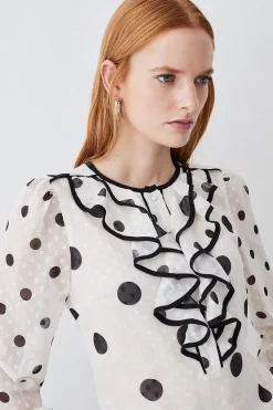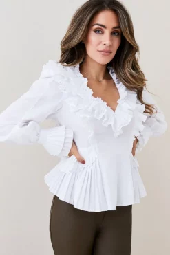 Best reviews of π Karen Millen Lydia Millen Pleat Ruffle Poplin Woven Blouse – ivory π