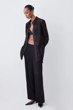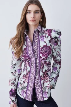 Promo π Karen Millen Lydia Millen Border Cotton Sateen Dip Hem Woven π Shirt – floral π