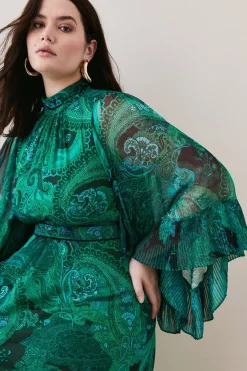 Flash Sale π Karen Millen Plus Size Drama Pleated Paisley Woven Midi – green β€οΈ