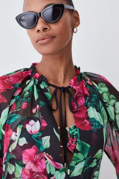 Best Sale π₯° Karen Millen Petite Spot Floral Chiffon Drama Hem Mini π Dress – multi π§¨