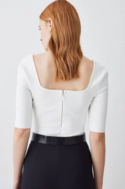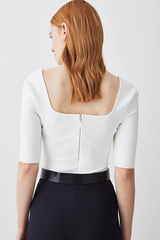 A staple piece with an elegant touch, this bodysuit can be easily dressed up or down, giving a multifunctional edge. A square neckline sits neatly across the profile. Style this piece with jeans for an everyday look, or tailored trousers and heeled boots for an elevated ensemble.