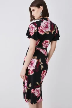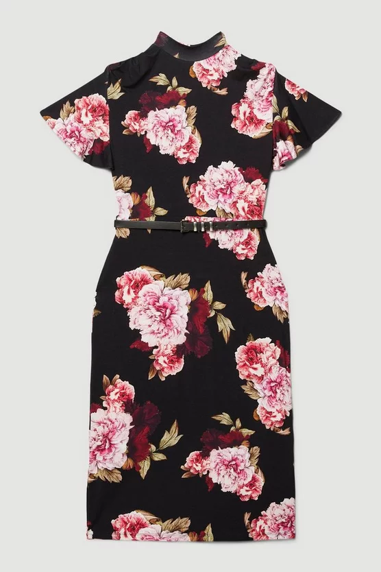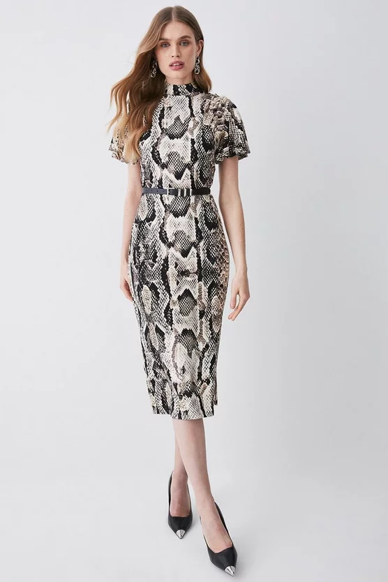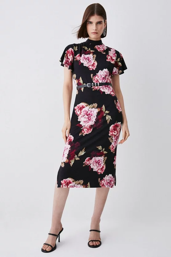 Coupon πŸ₯° Karen Millen Belted Viscose Blend Angel Sleeve Jersey Midi πŸ‘— Dress πŸ˜€