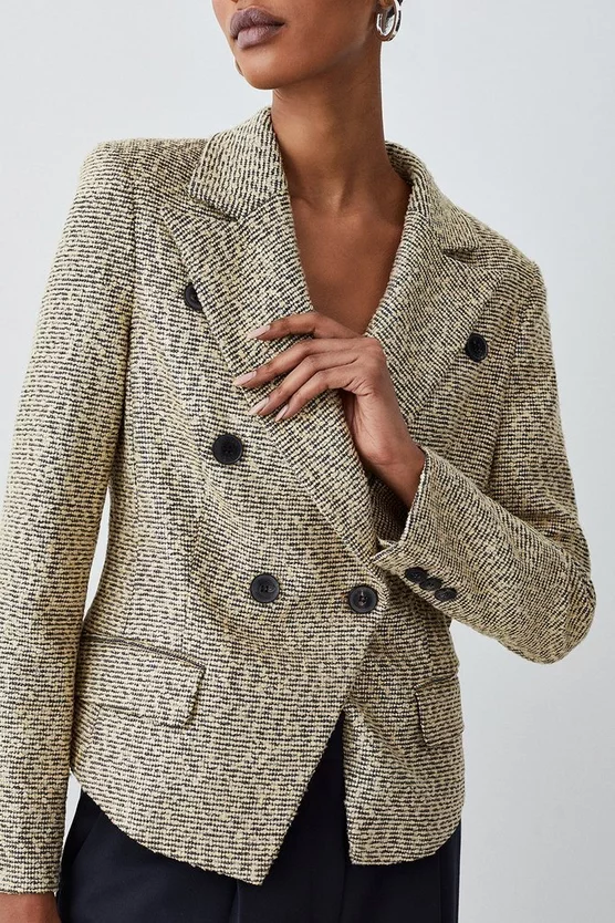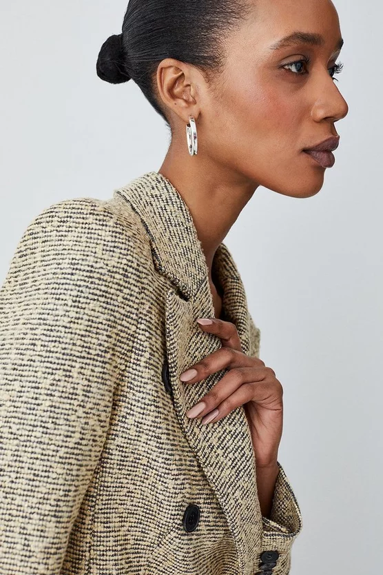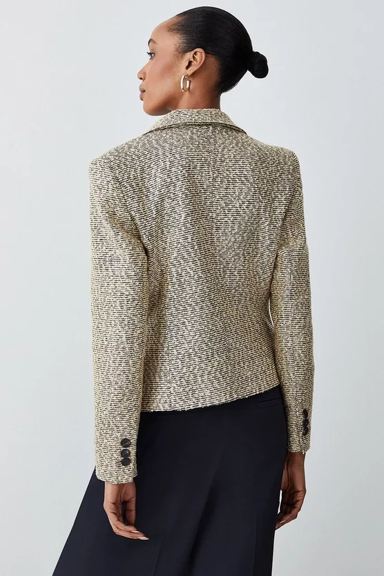 Main: 50% Polyester, 24% Viscose, 22% Acrylic, 3% Metallised fibre, 1% Elastane. Lining: 100% Polyester. Dry clean only. Model wears UK 8/US 4. Model height: 5″9. Length measurement: 56cm.