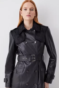 Top 10 π€© Karen Millen Leather Contrast Panels Belted Midi Trench π§₯ Coat – black π