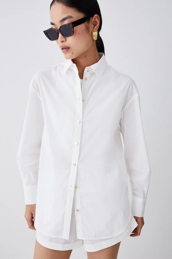 68% Cotton 29% polyester. Gentle machine wash at 30 with similar colours. Model Height 5”10 – Model wears a UK 8/US Size 6.