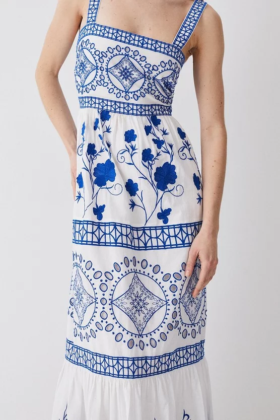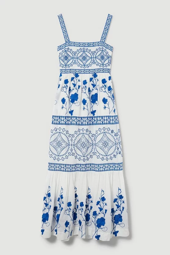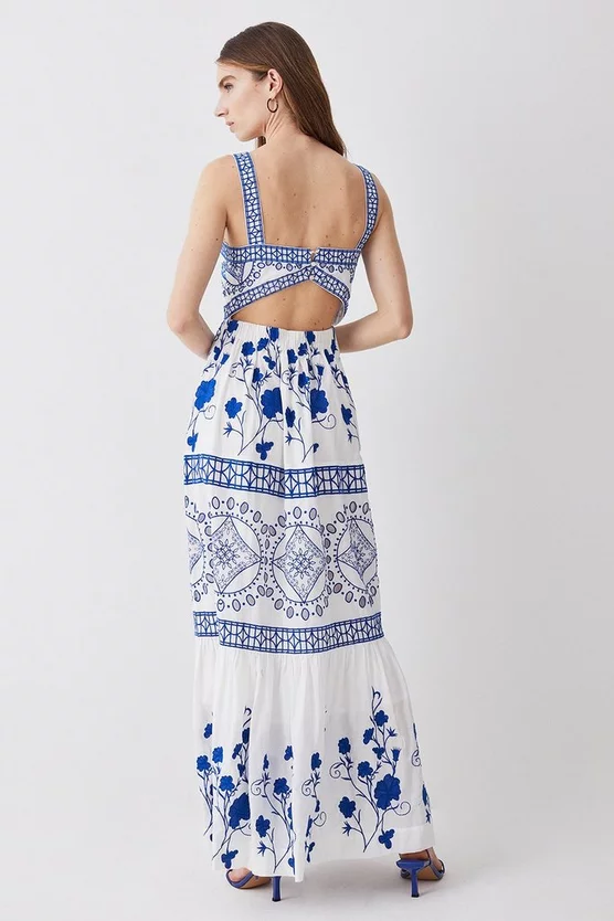 100% Cotton, Lining 100% Cotton. Gentle machine wash at 30 with similar colours. Model Height 5”10 – Model wears a UK 8/US Size 6. Centre back length 130cm.