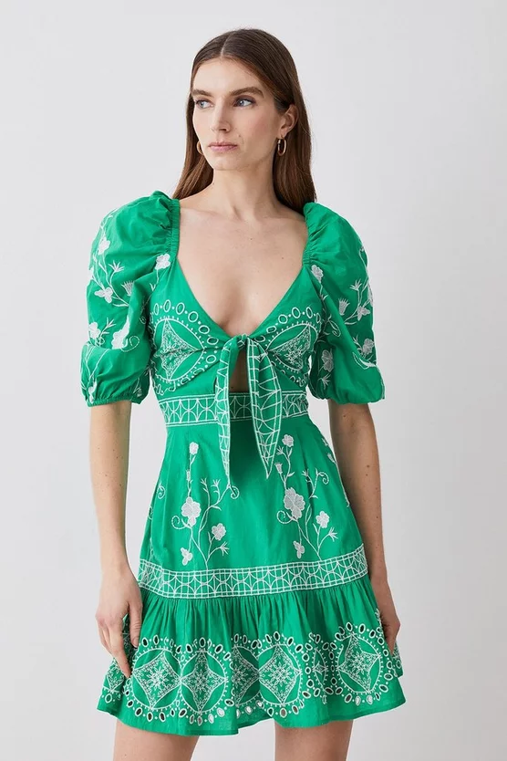 Cheap 𧨠Karen Millen Petite Guipure Lace Dot Pleated π Skirt Midi π Dress – mono π