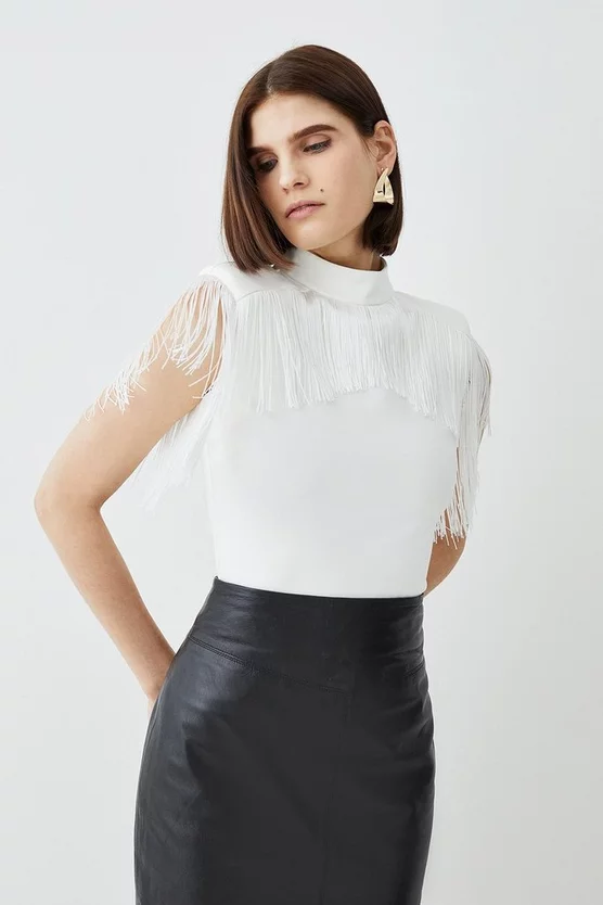 MAIN:67% VISCOSE 28% POLYAMIDE 5% ELASTANEΒ TRIM:100% POLYESTER Gentle machine wash at 30 with similar colours. Model Height 5”10 – Model wears a UK 8/US Size 6.