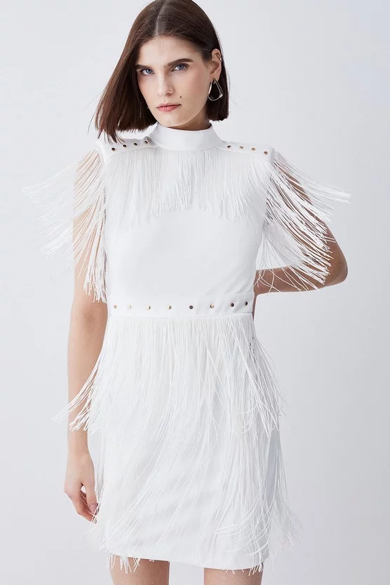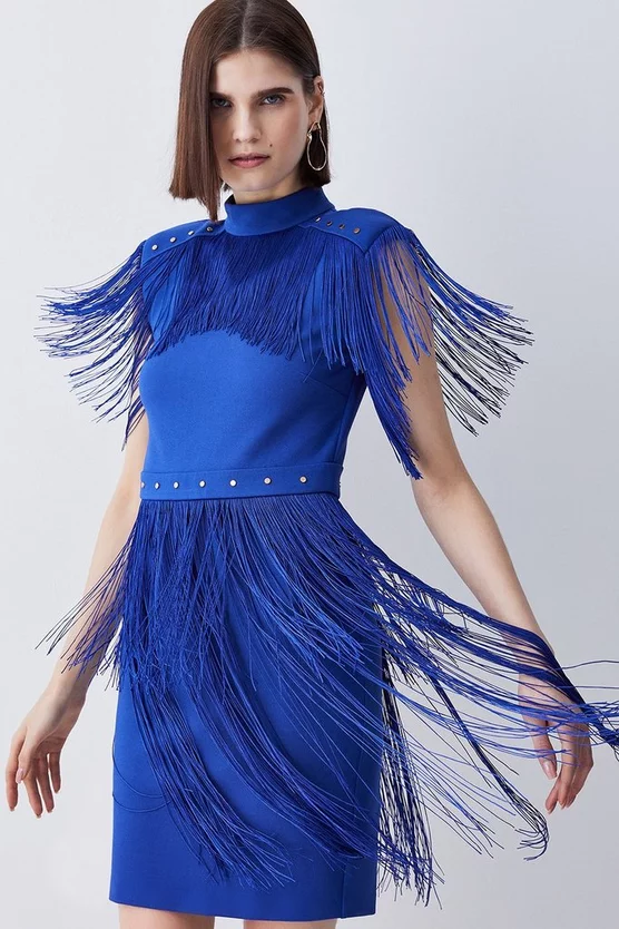 MAIN:67% VISCOSE 28% POLYAMIDE 5% ELASTANEΒ TRIM:100% POLYESTER. Cool Hand Wash Only. Model wears UK 8 US 4. Size 10 centre back length approx 90cm.