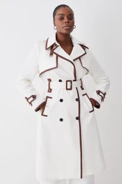 Promo βοΈ Karen Millen Plus Size Collar Detail Belted Trench π§₯ Coat – ivory π€©
