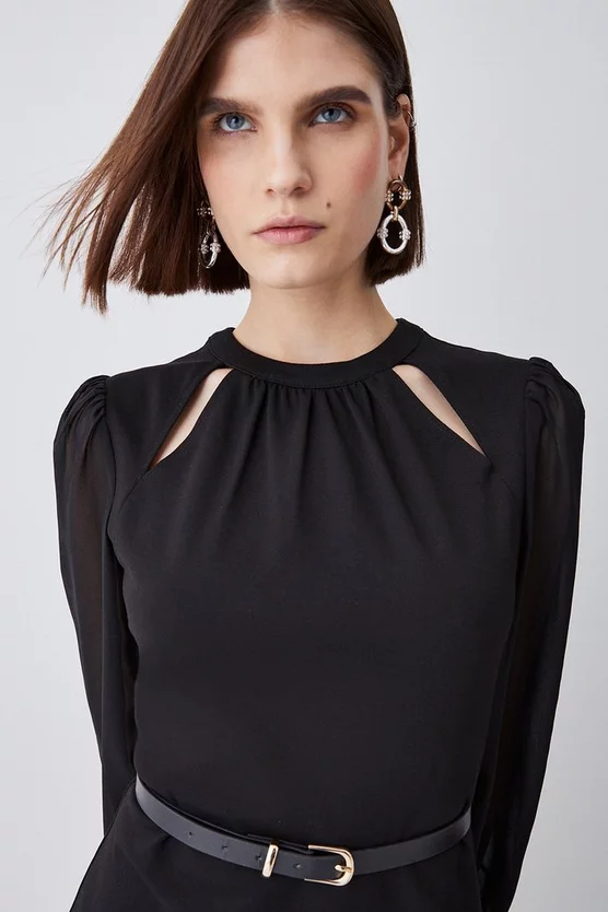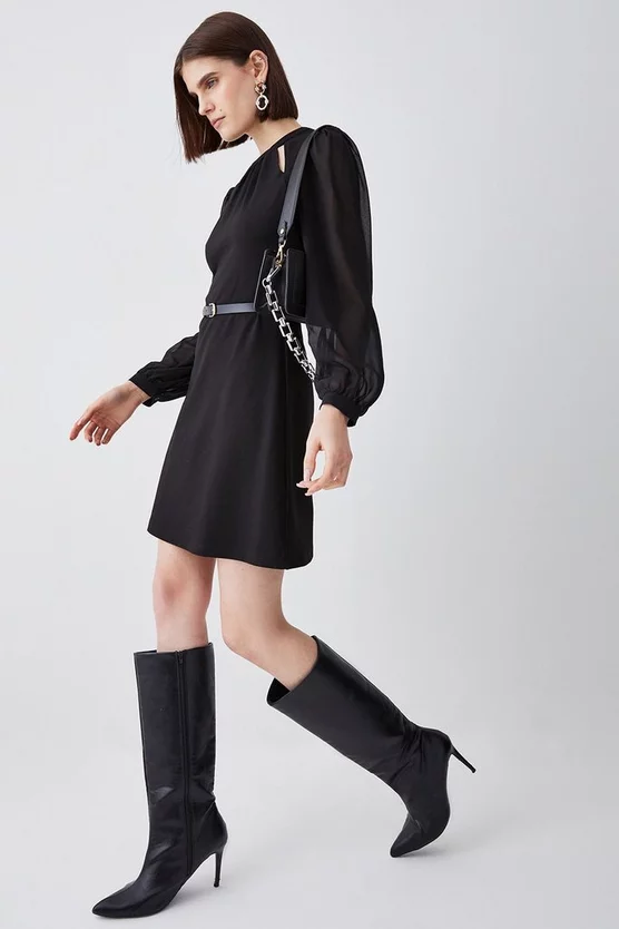 MAIN:62% VISCOSE 33% POLYAMIDE 5% ELASTANE SLEEVE:100% POLYESTER. Wash with similar colours. Model wears UK 8 US 4. Size 10 centre back length approx 90cm.
