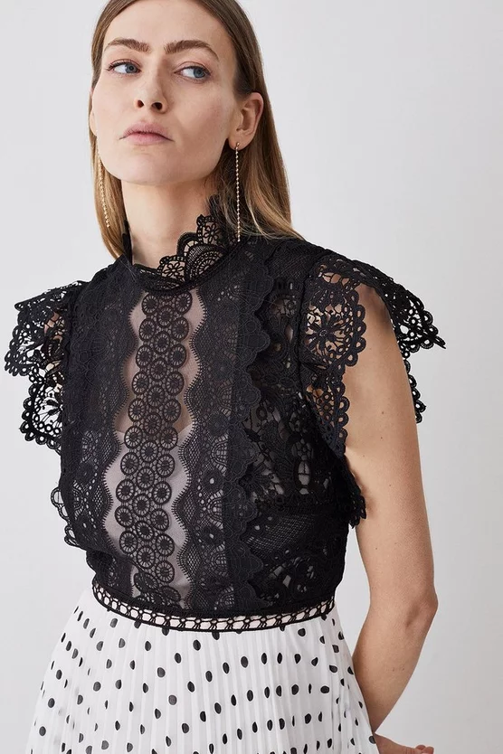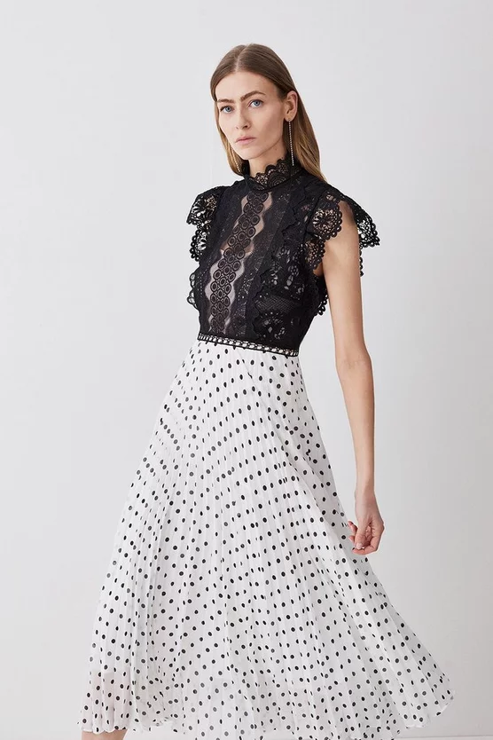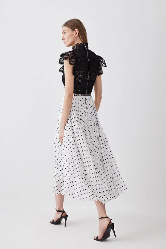 Best Sale β¨ Karen Millen Lydia Millen Floral Applique Mesh Woven Midi π Dress – mono π―
