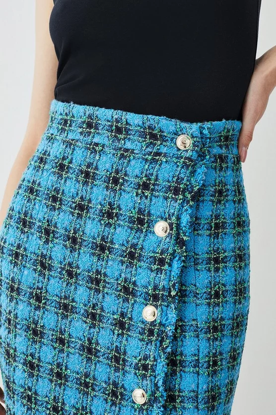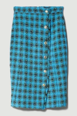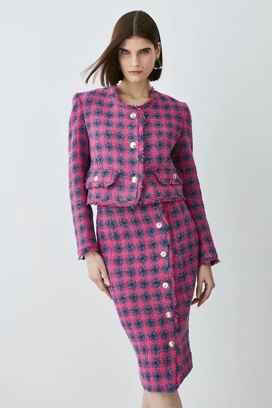 Main: 42% Cotton, 31% Polyester, 16% Acrylic, 9% Wool, 1% Metallised Fibres. Dry clean only. Model wears UK 8/US 4. Model height: 5″9. Length measurement: 69cm.
