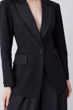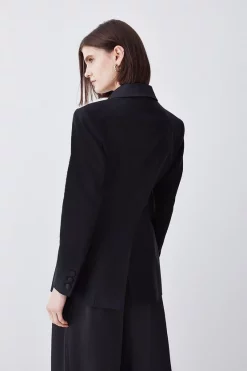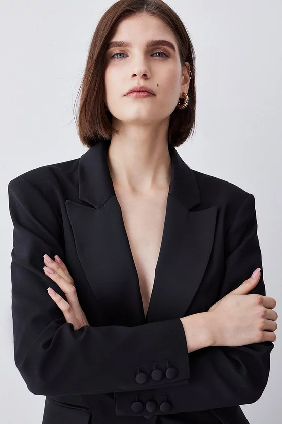 Main: 76% Viscose, 22% Virgin Wool, 2% Elastane. Lining: 100% Polyester. Dry clean only. Model wears UK 8/US 4. Model height: 5″9. Length measurement: 77cm.