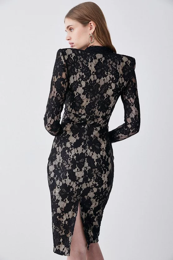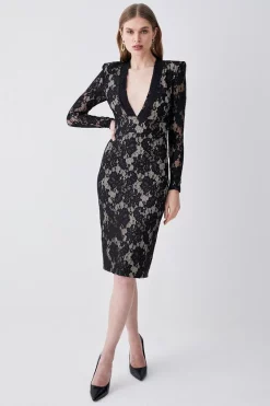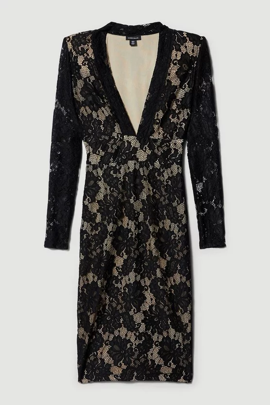 Coupon πŸ”₯ Karen Millen Lace V Neck Long Sleeve Midi πŸ‘— Dress – black πŸ‘