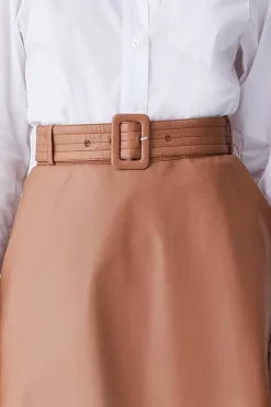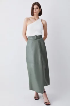 Championing versatility and expert craftmanship, this leather maxi skirt makes the perfect addition to your capsule collection. A draped cut adds an element of feminine allure, while a buckle belt adds structure. Whether paired with heels or boots, this piece promises an elevated finish.