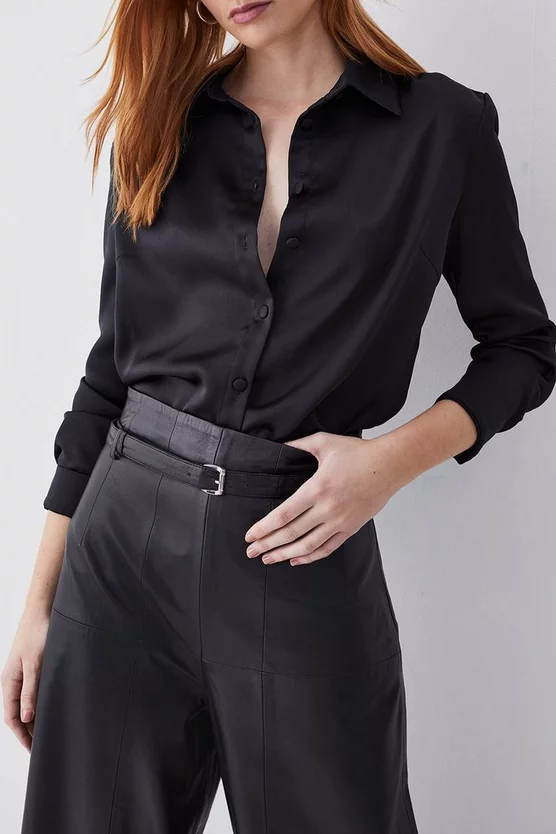 Main: 100% Responsible Leather. Lining: 100% Polyester. Wipe Clean Only. Model wears UK size 8/ US size 4. Model height Approx: 5″9. Length Approx: 88cm.