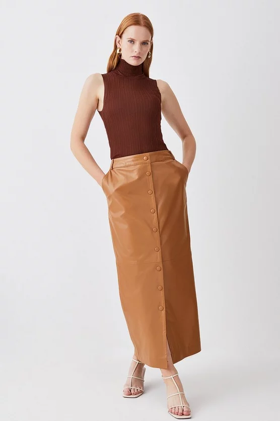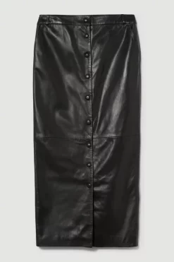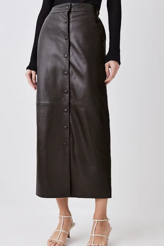 A sleek design with timeless appeal, this maxi skirt adds a directional aesthetic to any outfit. Crafted from sumptuous leather for a luxurious feel, this piece can elevate a basic top for after-dark plans, or act as the foundation to your workwear ensemble.