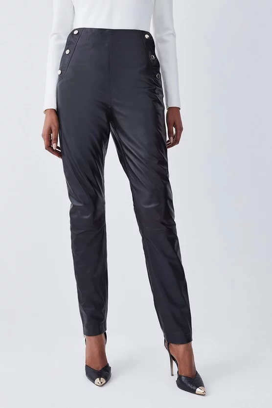 Main: 100% Responsibly Sourced Leather. Lining: 100% Polyester. . Model wears UK size 8/ US size 4. Model height Approx: 5″9. Inside Leg Length Approx: 78cm.