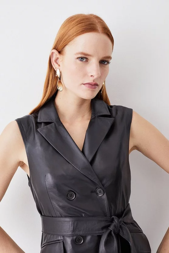 Main: 100% Responsible Leather. Lining: 100% Polyester. Specialist Clean Only. Model wears UK size 8/ US size 4. Model height Approx: 5″9. Length Approx: 134cm.
