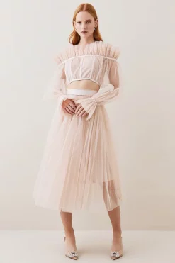 Top 10 πŸŽ‰ Karen Millen Lydia Millen Corset Detail Tulle Woven Bardot Top – neutral 🌟