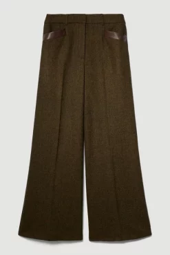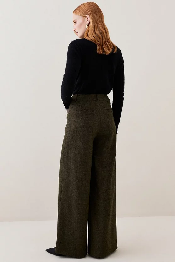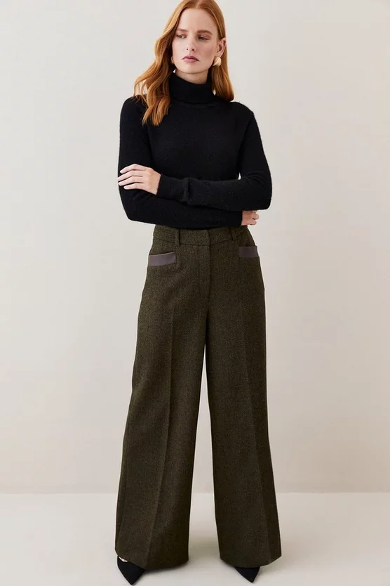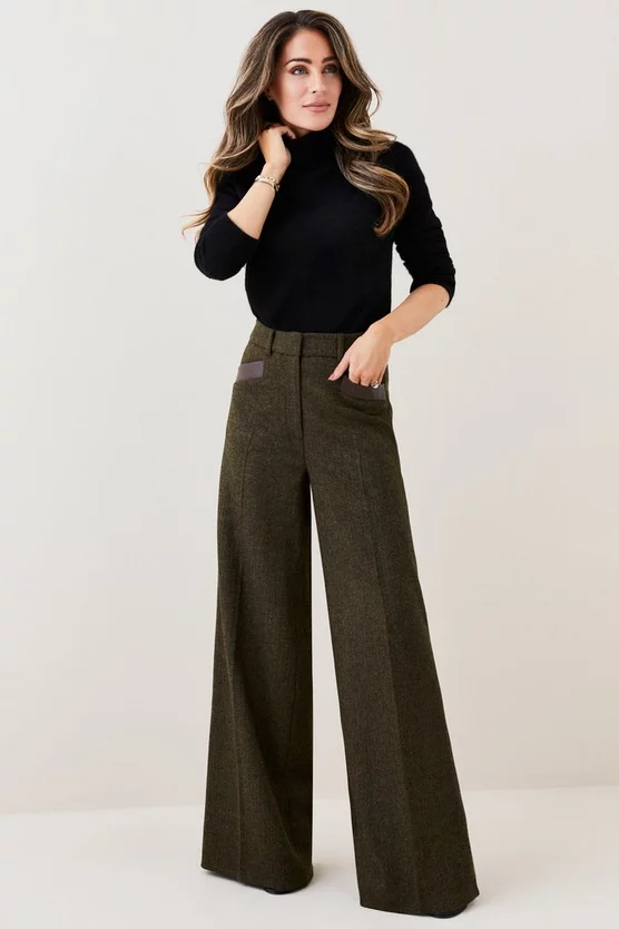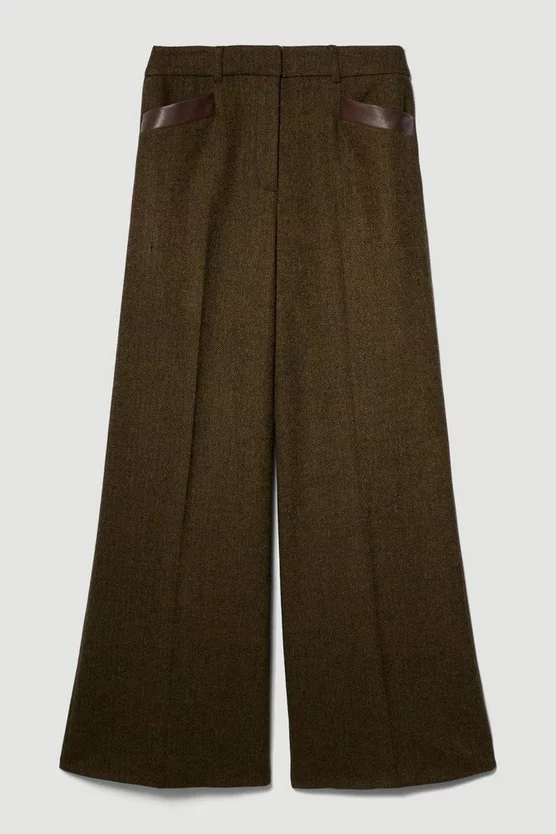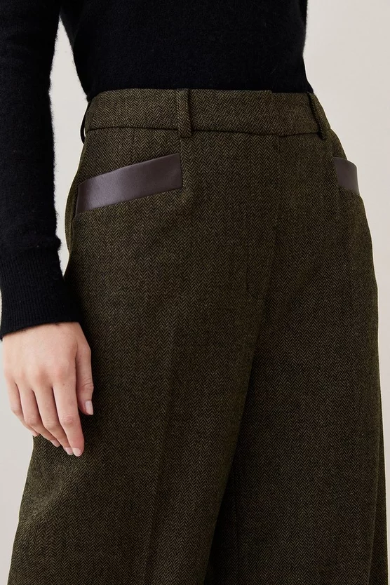 This retro wide-leg silhouette is elevated with a heritage tweed composition, adding undeniable sophistication. Leather-lined slip pockets add further premium appeal to the design, while the addition of belt loops allow for customisation. Style this pair with an elegant blouse or classic turtle neck jumper.