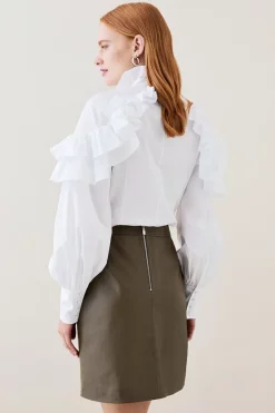 An iconic staple with timeless appeal, this leather mini skirt is an essential addition to your capsule wardrobe. A high waistband and A-line silhouette ensure a flattering fit, pair this piece with knee-high boots and a jumper to achieve an autumnal aesthetic, or choose heels and a blouse for an elevated look.