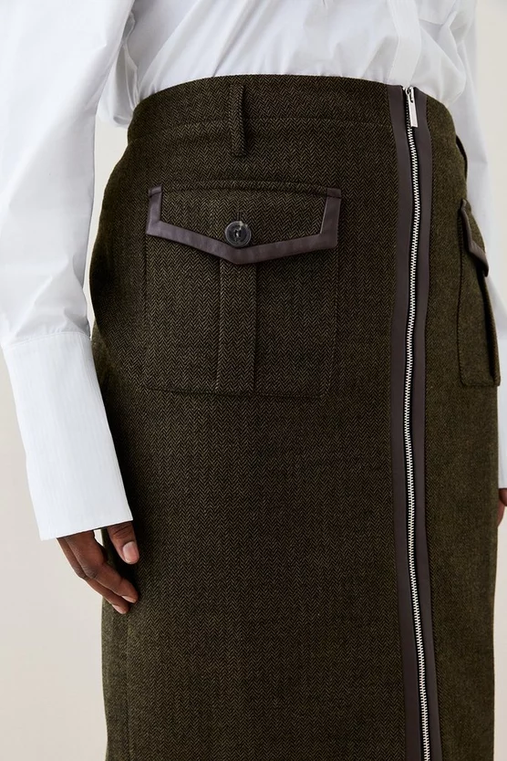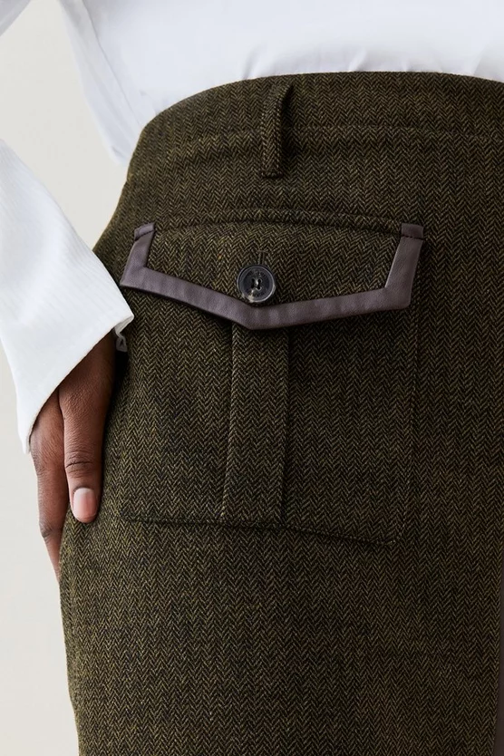 Main: 69% Virgin Wool, 30% Polyester, 1% Elastane. Excluding trims: Lining: 100% Polyester. Dry clean only. Do not wash. Do not tumble dry. Dry iron cool. Model wears size UK18/US16