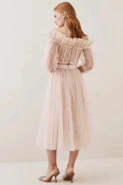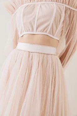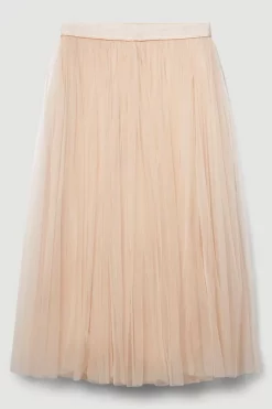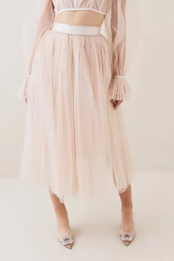 Crafted with sweeping tulle fabric, this elegant skirt cascades down to a maxi hemline. This romantic design has an undeniably feminine feel and gracefully swishes with every step.