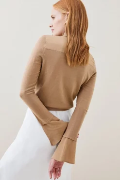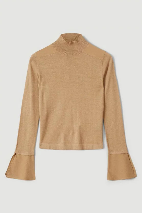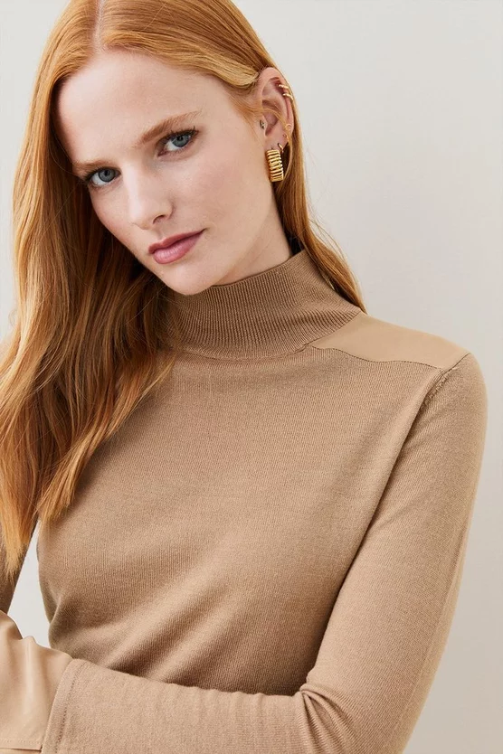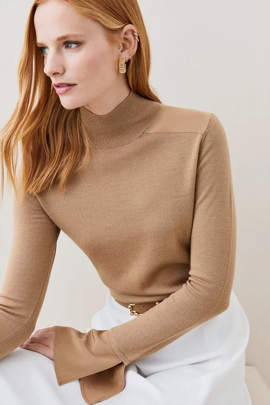 Cut in a slim fit, this soft mock neck jumper is adorned with a panelled design on the shoulders and cuffs, which lend this piece a polished touch. Pair it with a midi skirt and loafers for a cosy and covetable look.