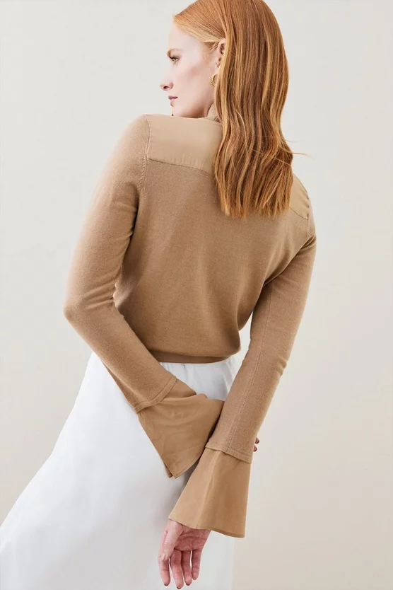 Main: 98% Responsibly Sourced Wool, 2% Polyamide. Contrast: 100% Silk. Hand wash. Model wears UK Small. Model height approx 5″9.