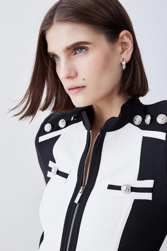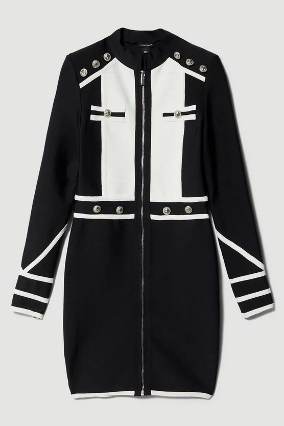 97% Recycled Polyester 3% Elastane. Dry Clean Only. Model wears UK Small. Size Small centre back length approx 90cm.