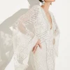 Promo β¨ Karen Millen Metallic Guipure Lace Pleated π Skirt Midi π Dress – ivory π₯°
